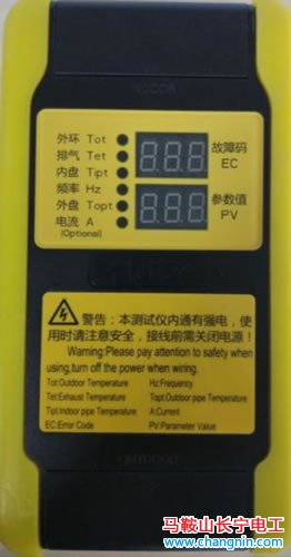 ②檢測(cè)儀上標(biāo)有“INDOOR”字樣代表該側(cè)端子臺(tái)連接空調(diào)室內(nèi)機(jī),標(biāo)有“OUTDOOR”字樣代表該側(cè)端子臺(tái)連接空調(diào)室外機(jī)。